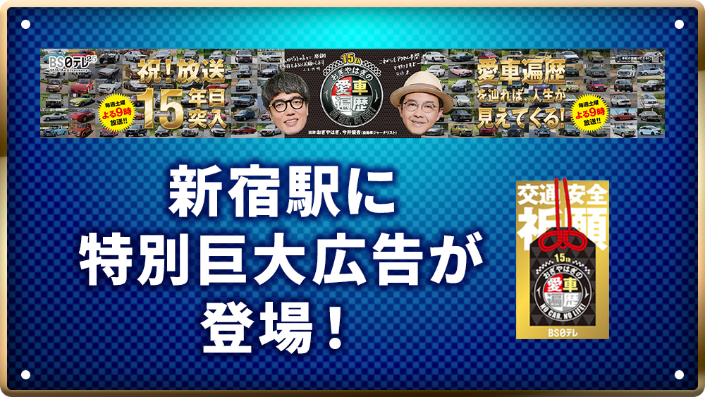 全長約14mの「おぎやはぎの愛車遍歴」特別広告が登場します!