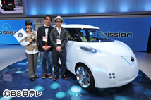 ダイハツのピコやスズキのキュー・コンセプトといった、パーソナルコミューターの前で「次世代じゃなくて今欲しいなぁ。奥さんが使うのに便利そう」と小木さん。ホンダのEV-STERの前では「ツインレバーステアリングかぁ、これでサーキットを走ってみたいよね」と矢作さん。近未来のクルマを見て、お二人とも少年に戻ったようでしたよ〜。