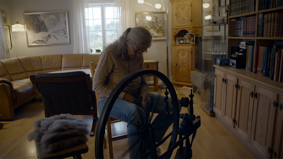 ジャコウウシは分厚い綿毛のおかげで氷河期も生き延びることができました。春になって気温が上がってくると大量の汗をかき始め綿毛が抜け落ちツグミやホオジロなど多くの鳴禽類がこの綿毛を使って巣を暖めます。教員を定年退職したエリンも綿毛を集めます。大自然の中の小さな農場で家族と暮らす彼女はジャコウウシから抜け落ちた綿毛を使い自宅でウールの加工をしています。