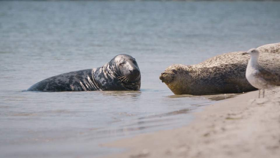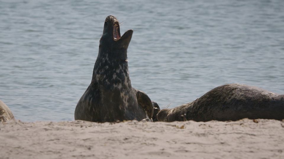 ドイツ西北部の離島ヘルゴラント島はハイイロアザラシの繁殖地です。島の周りは彼らの絶好の狩り場で広い砂浜は理想的な休憩所です。水中を優雅に泳ぐアザラシは呼吸や休憩のために水面に顔を出し、ゆっくり休みたいときは砂浜がお気に入りです。ハイイロアザラシはドイツでは最大の捕食動物で、生後1か月でジャーマン・シェパードの歯と同じくらいの大きさの歯が生えそろいます。レンジャーのウタは毎朝、海岸でアザラシを観察しています。