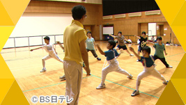 父のフェンシング教室で原石たちと剣を交える三宅選手。