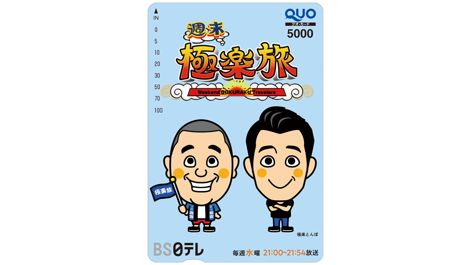 「週末極楽旅」のレギュラー放送決定を記念してTwitterキャンペーンを実施中!番組オリジナルクオカード5000円分を5名様にプレゼント