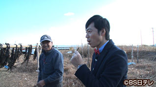 ワカメによく似た「アラメ」を干しているおじさんに遭遇!