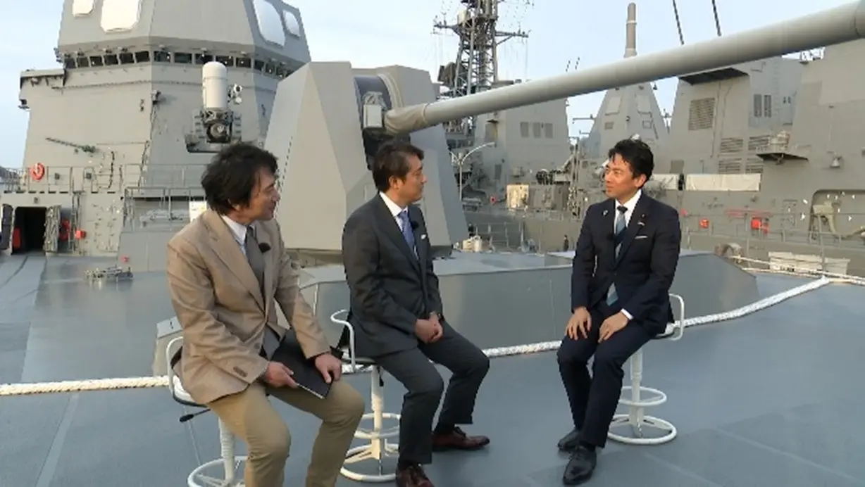 後半は右松健太キャスターと伊藤俊行コメンテーターが、護衛艦「てるづき」艦上で小泉進次郎防衛相を直撃します。