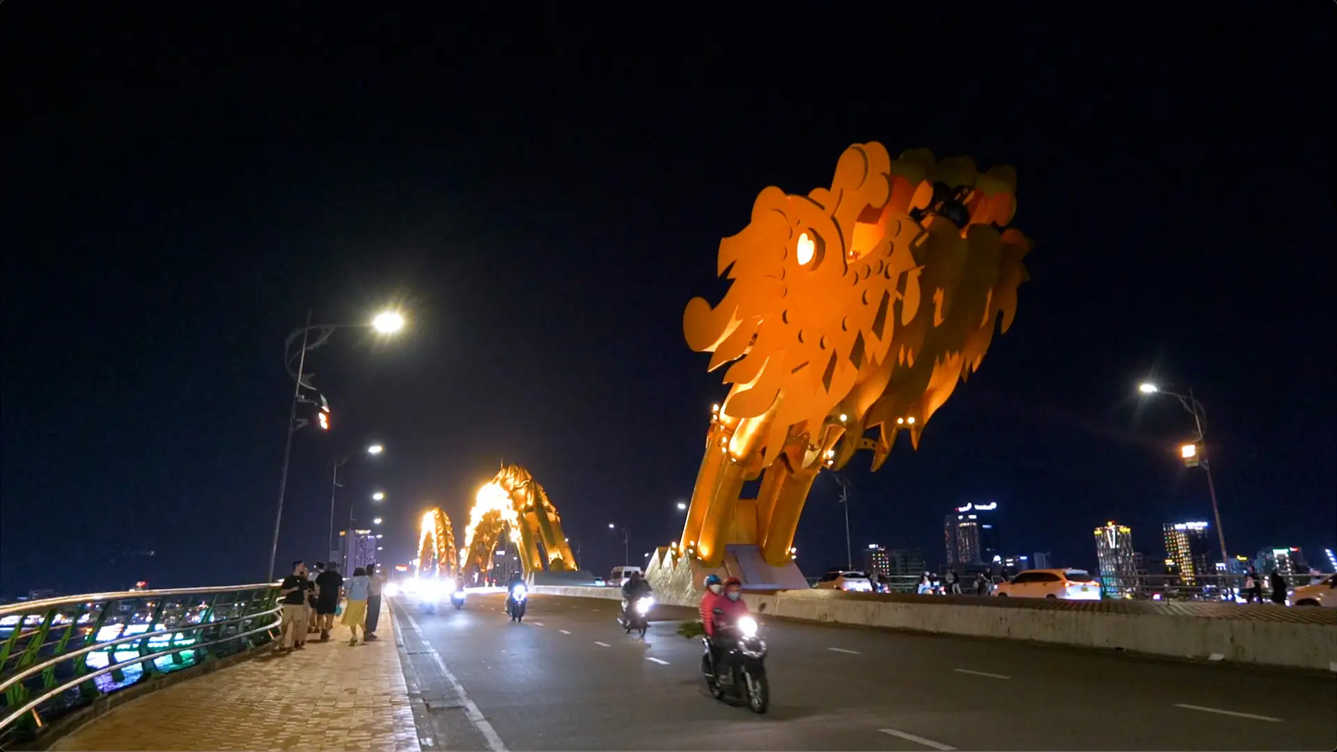 そこに架かるのはドラゴンブリッジ(ロン橋)。ライトアップされた橋に斎藤佑樹も興奮!目がハートなのもポイント。