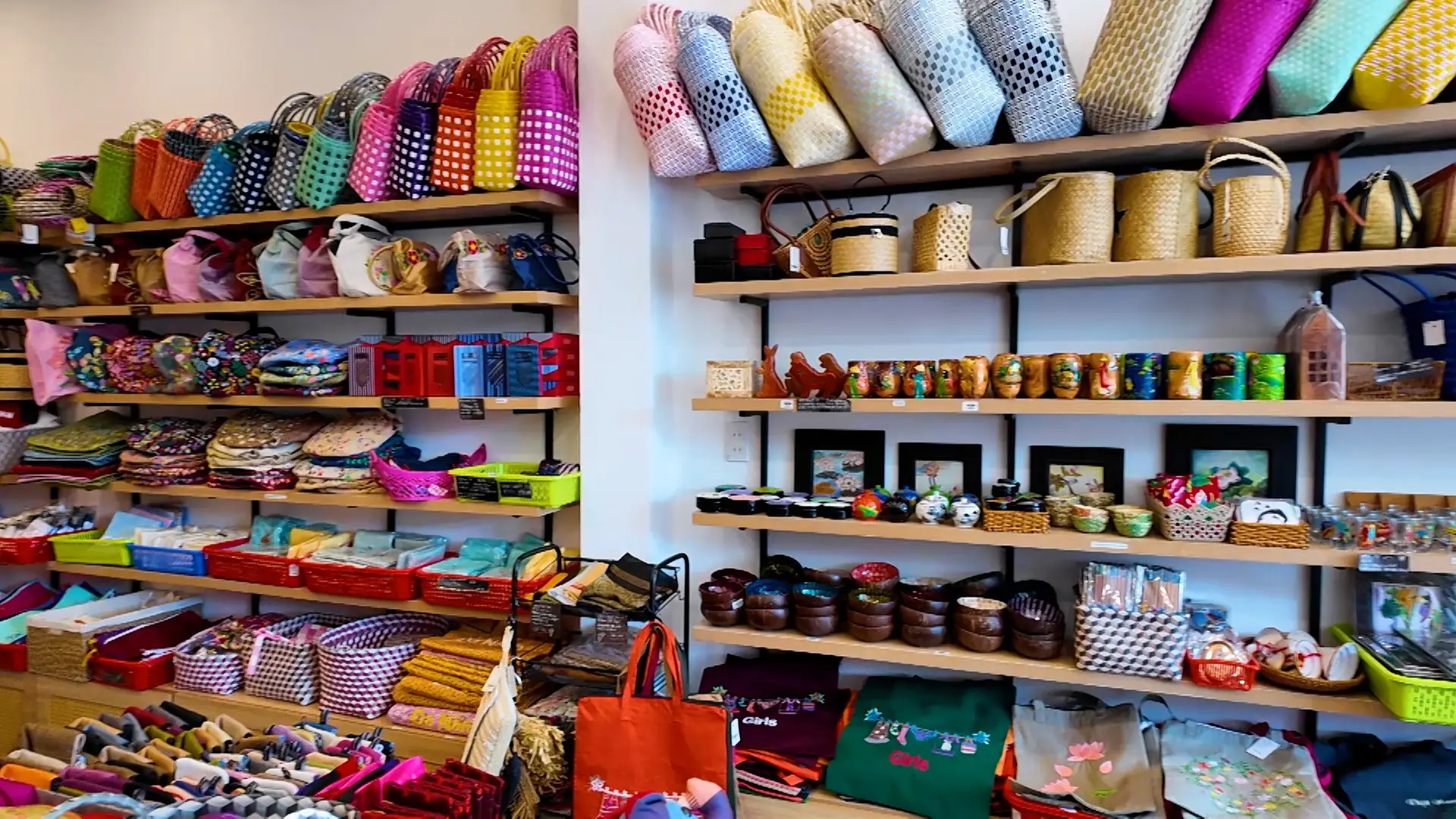 バッグやポーチをはじめ、ドラゴンフルーツのワインなど品揃えも豊富。