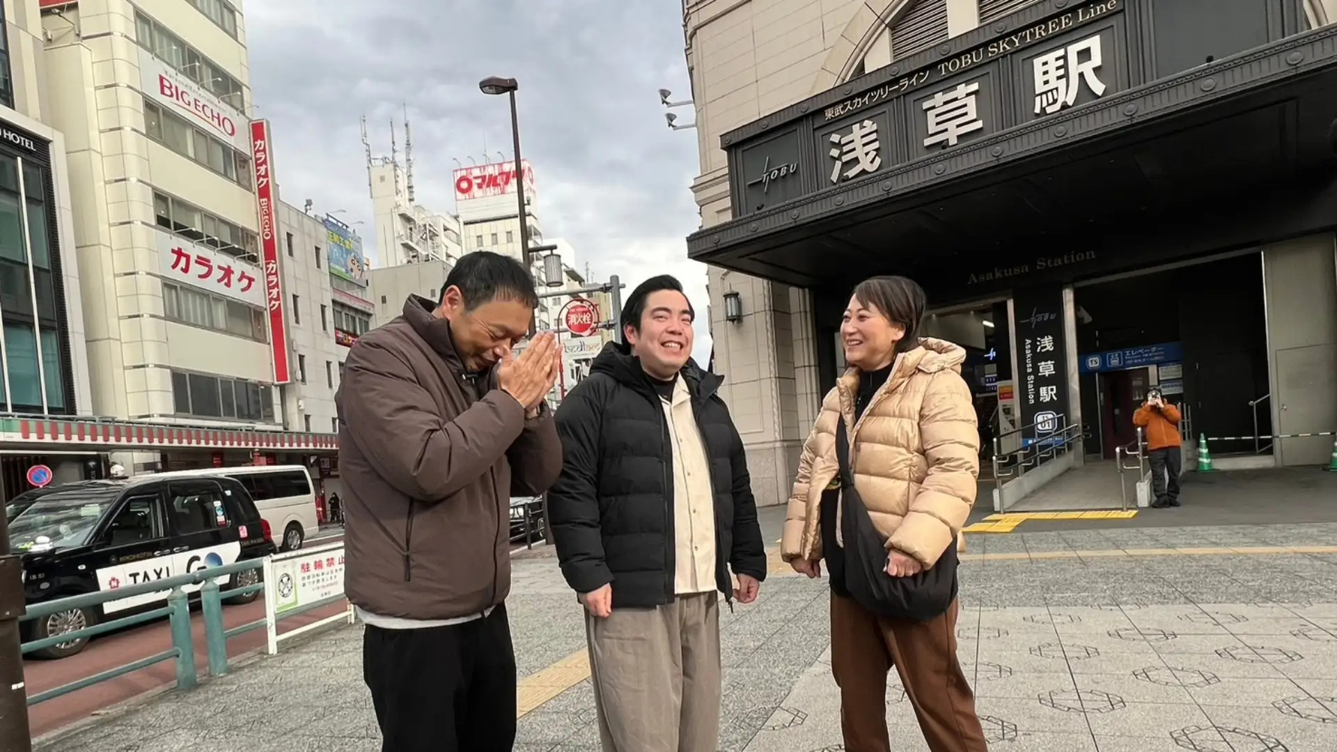 旅の出発地点は、東武浅草駅。そしておなじみ、友近&礼二の夫婦風漫才で幕開け。さらに今回は、徳永も加わり、ちょっとしたカオスな寸劇に…。ディープな鉄ちゃんで知られる礼二、徳永だが、2人ともスペーシアXには今回が初乗車という。そしていよいよ入線…しかし、ここで礼二に予測不能なアクシデントが!発車前からワクワクで写真を撮りまくる友近、徳永。一方で、ちょっとヘコみ気味の礼二は「初めてや、こんなの」とボヤき…。
