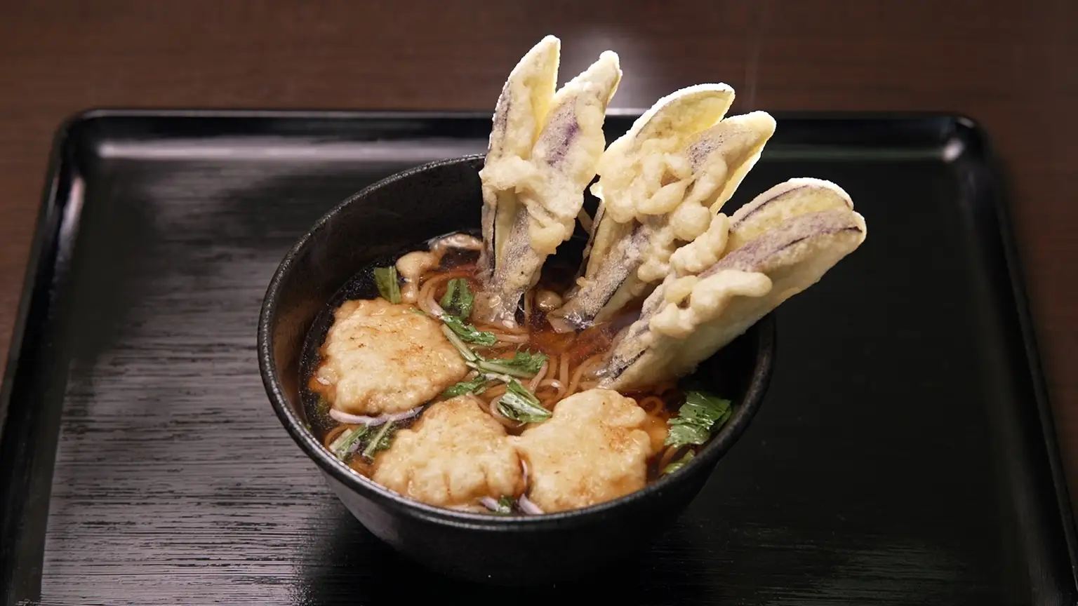 「はぁ〜!ほんま優しい味です。関東と違ったうす味のお出汁。お出汁の旨みがしっかり感じられる。鍋焼きだから、そばが柔らかくなっているのがいい」と染み染み食べ進めると、熱々の鍋底には、意外なある食材が。
