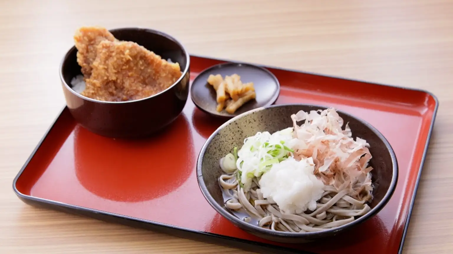 福井県では大根おろし、削り節、刻みねぎが乗る冷たいおろしそばを1年中食べるといい、当番組では「ソースかつ丼セット」(1,100円)が紹介されました。