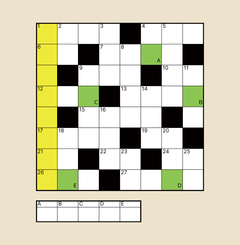 クロスワードを解いて、でてきた5文字のキーワードを応募フォームへ入力