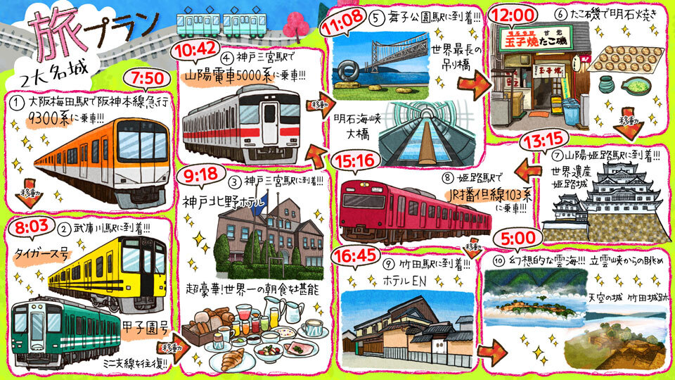 タイガース号に甲子園号!試合の日に乗ってみたいですねぇ。所沢への車内でタイガースファンの方々とは何度か会話したことがありますが、確かに、読売と言ってましたね笑姫路城と竹田城。実はどちらもじっくり見たい場所でした。時季もいいですし、そろそろ妄想からの実践といきたいところですね。