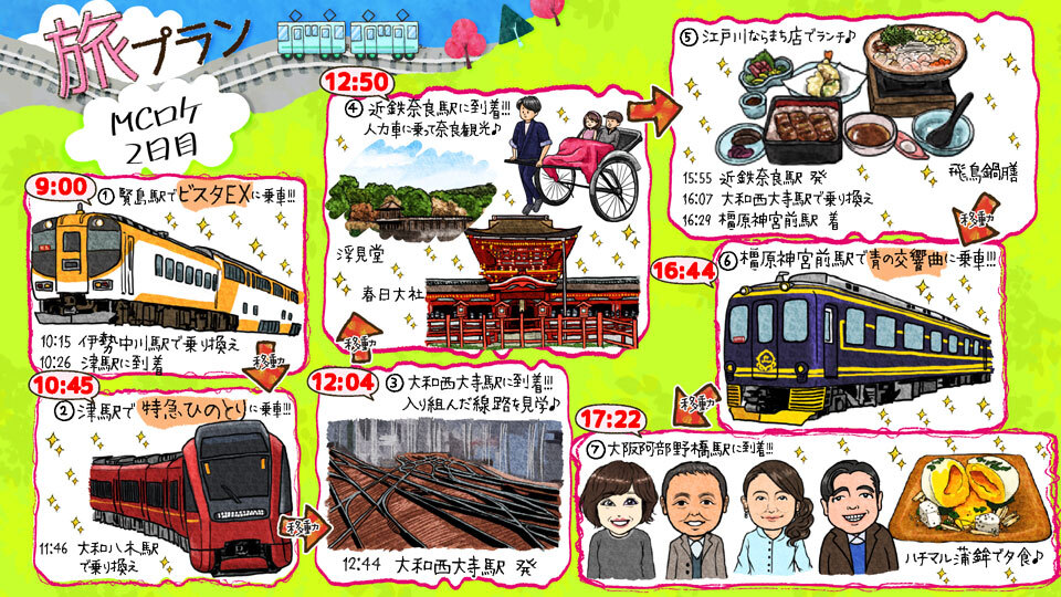 絶好調でしたねぇ指パッチンが。「阪神車と近鉄車が並びましたよ!水森さぁん!」興奮する徳ちゃんがやたら印象にのこったなぁ。人力車も経験してみたいな。降りたくない気持ちはよくわかります。鹿ちゃんを見ると修学旅行を思い出しますねぇ。どら焼き、三笠、なるほどでした。わざわざホームで出迎えてくれた冨好さん。ありがとうございました!