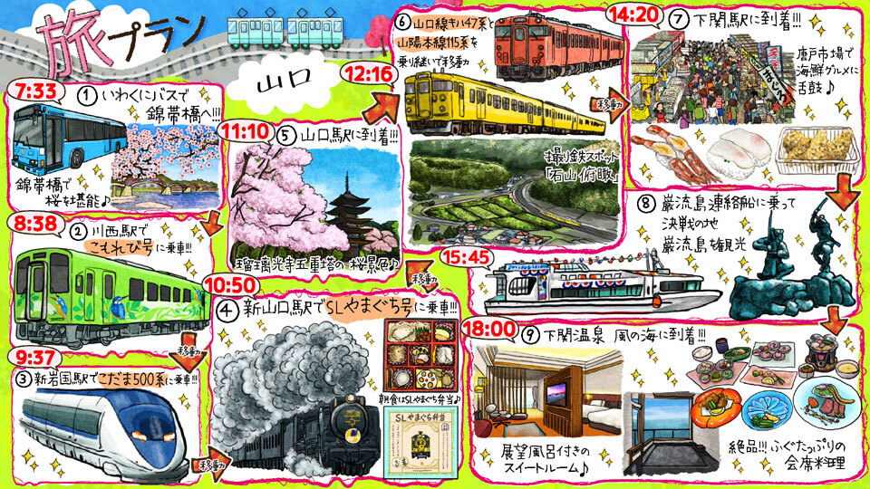 なんだろう?とってもいい感じでしたぁ。山口に行ってみたくなりましたよ。錦帯橋が桜の名所だとは!教科書の知識だけではもったいないですね、やはり実際に足を運ばないと。不思議な食リポ合戦となりましたが笑ふぐは「ふく」になるのですね。にぎり寿司が100円とは!?唐戸市場での食べ歩きも体験してみたいものです。
