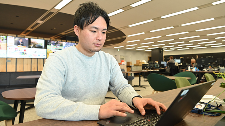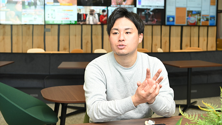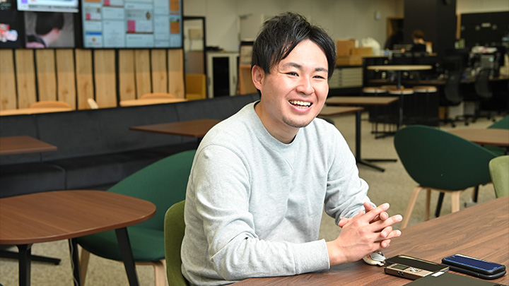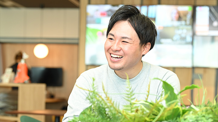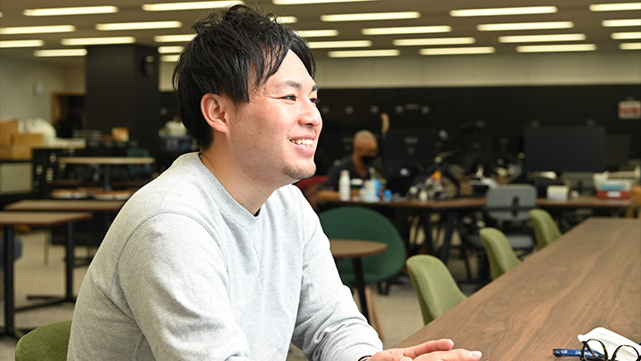 僕は今、仕事でスーツをほとんど着ないのですが、面接でもスーツの方がほとんどいなくて、まず驚きました。面接官はいろんな部署から構成されるのですが、営業の方はスーツ、制作の方はパーカーなどの服装で面接をするので、格好がすごいラフだったのは意外でした。それから人の良さも感じましたし、すごくおもしろいというか、そんな風に面接をしてくれたというのがすごく印象に残っていて。就職の面接ってある程度、固くなるじゃないですか?それが普通だと思うのですが、そうじゃなかったところですごく惹かれましたね。