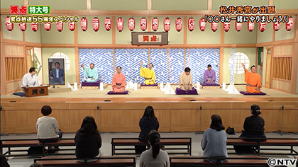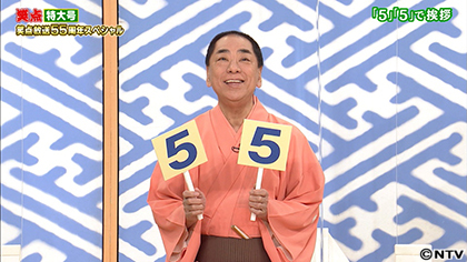 そこで皆さん、登場と一緒に持って来た「5」「5」の2枚の札を手にご挨拶をお願いします。